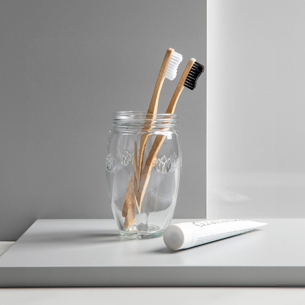 Verwende das Purora Glas als Zahnbürstenhalter oder einfach als Becher zum Spülen.