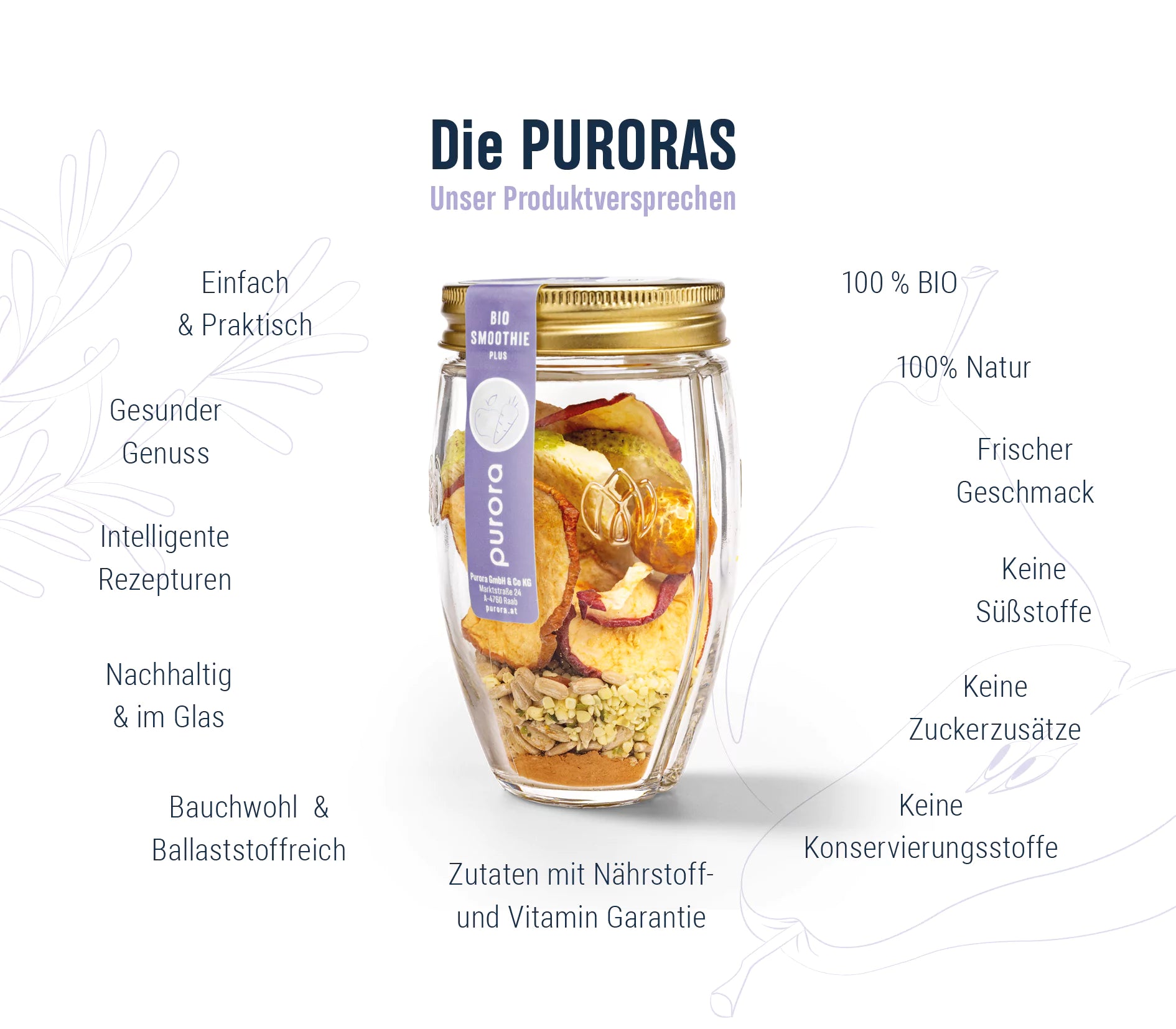 1. Leichter leben – mit echter NährkraftEin Purora-Glas schenkt dir spürbare Leichtigkeit und versorgt dich 3–5 Stunden mit natürlicher Energie – ideal zum Abnehmen oder für bewusste Ernährung im Alltag.