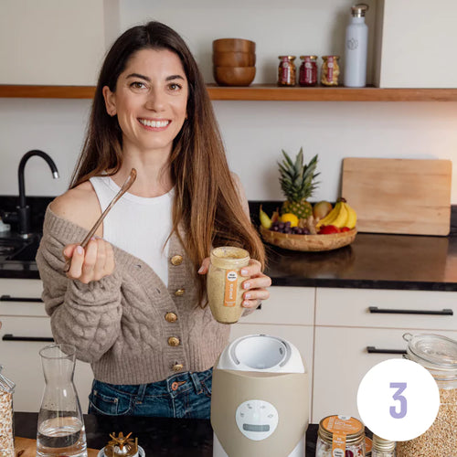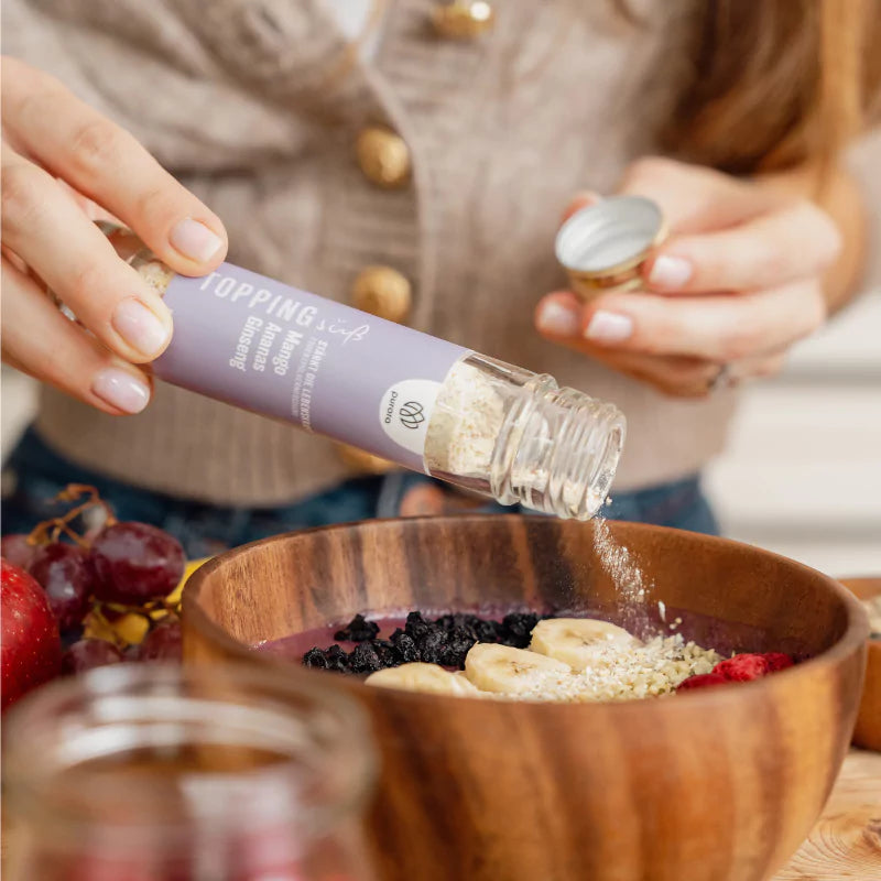 3. Direkt im Glas genießen – Verfeinere deine Mahlzeit nach Belieben mit Toppings, Früchten oder Snacks und genieße sie direkt im Glas.